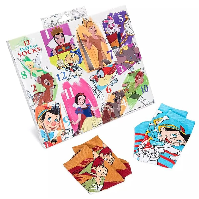 Celebrate the fine art of Disney Animation with a daily change of character from this set of 12 expressive socks from the Disney Ink & Paint Collection. Show your true colors when selecting from a possibility of six crew socks or six low cut socks, each emblazoned with a classic cartoon icon.