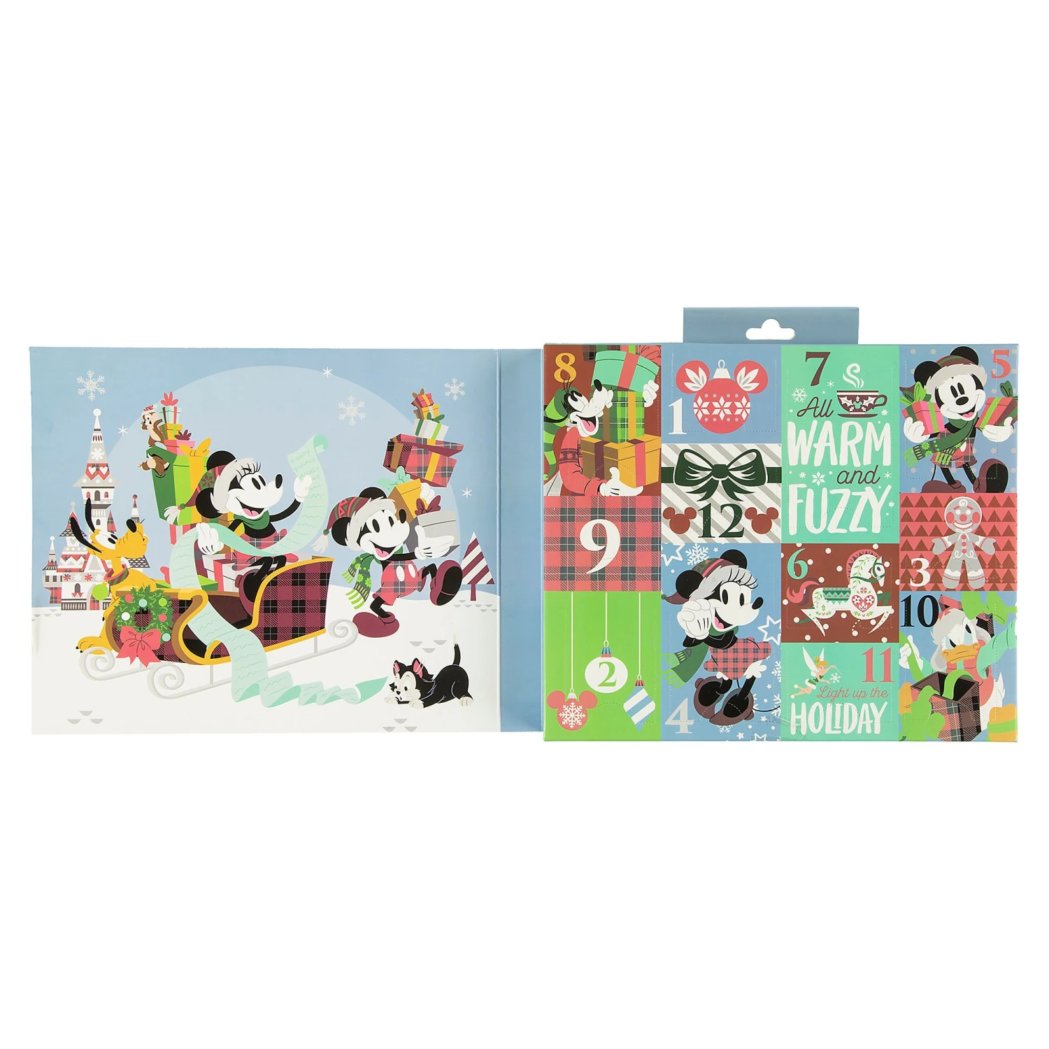 - Comes packaged in a festive gift box featuring screen art of Santa Mickey and Minnie, Goofy, Pluto, Figaro, Tinker Bell, and Chip ‘n Dale