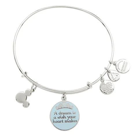 The fairytale sentiment ”A dream is a wish your heart makes,” will always be close at hand with this Cinderella bangle. Created by Alex and Ani and ”infused with positive energy,” it’s available in a choice of silver or gold finish.
