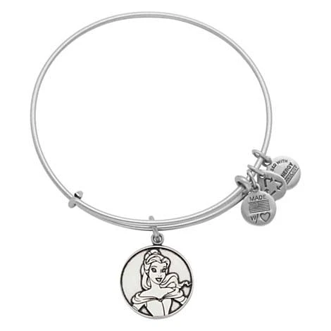 The Disney Princess is etched onto the largest of the charms that jingle with ”positive energy.” Crafted by Alex and Ani using recycled materials, this Beauty-ful Belle bangle is available in a choice of silver or gold finish.
