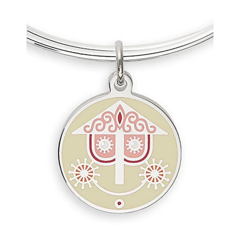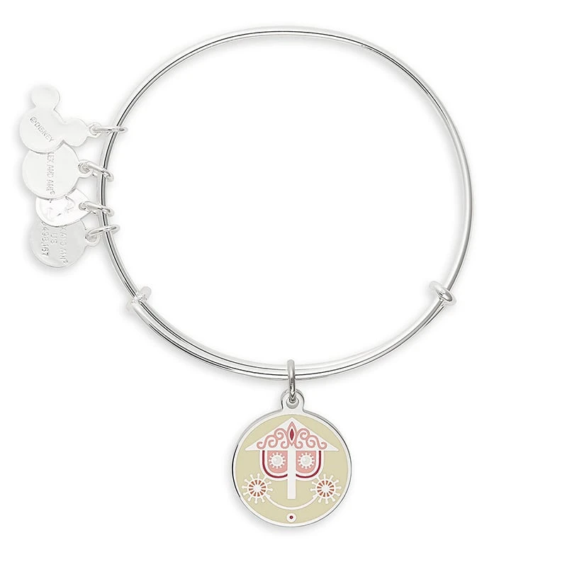 Happy memories of the popular Disney it’s a small world attraction will always be close at hand with this bangle by Alex and Ani. The double-sided enamel cloisonné charm comes on an expandable brass bracelet with a silvertone finish.