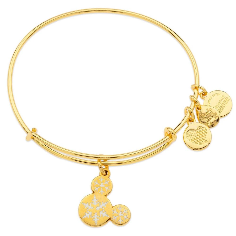 A flurry of snowflakes land on the Mickey icon charm of this holiday bangle by Alex and Ani. The enamel cloisonne charm delicately hangs from a polished bracelet available in gold, rose gold, and silver finishes.