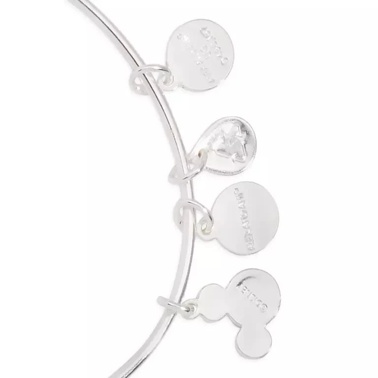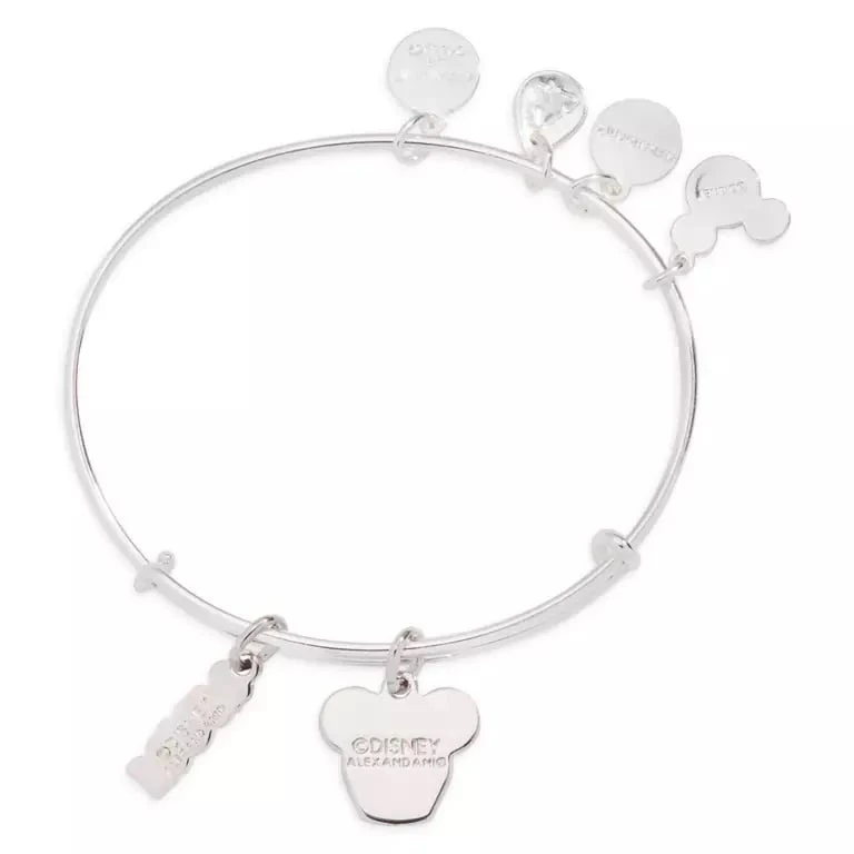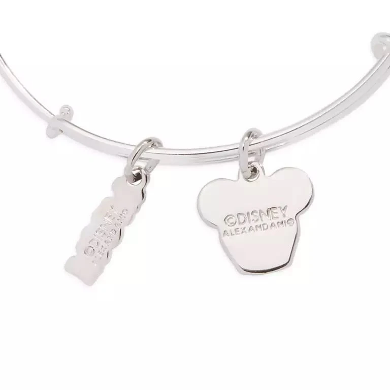 The loveliest way to show Mom how sweet she is, this Minnie Mouse icon cupcake and ”Mom” bangle by Alex and Ani features adorable charms that speak volumes. The Minnie Mouse icon cupcake is ”topped” with a cherry-red heart. The Mickey Mouse icon in the ”Mom” charm sparkles with a crystal. The adjustable silvertone bracelet also includes signature Alex and Ani charms for a look that Mom will love.