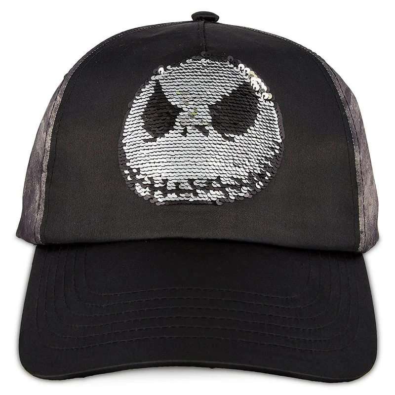 Jack Skellington’s haunting features are captured in reversible silver and black sequins on the front of this satin baseball cap inspired by Tim Burton’s The Nightmare Before Christmas. Flip the reversible sequins to change Jack’s expression.