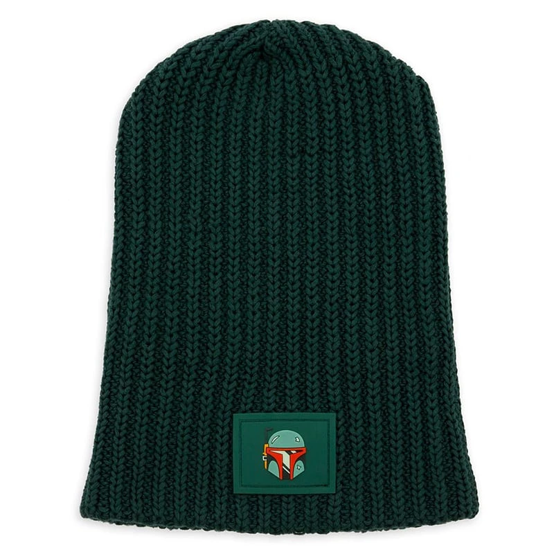 An appliqué patch of the legendary bounty hunter adorns this knitted beanie from Love Your Melon. Woven with dark green yarn, this Boba Fett cap is definitely better than having a price on your head.
