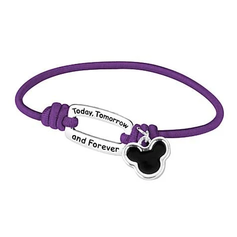 Mickey wants to let your friends know exactly how you feel. This cute stretch Mickey Mouse Bracelet features a Mickey icon charm and two-sided plaque etched with ”Today, Tomorrow, and Forever” on one side and ”Friends are Always There” on the other.