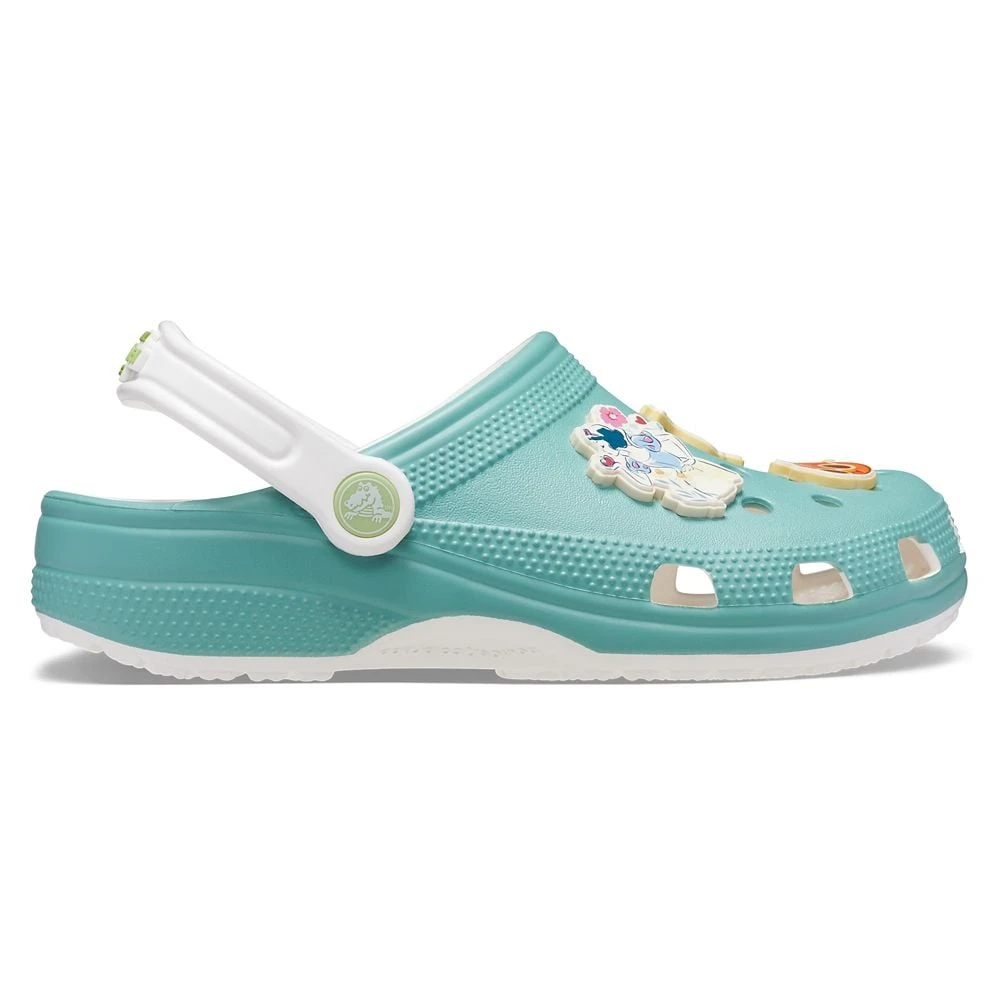 - Three molded Jibbitz vinyl charms on each shoe