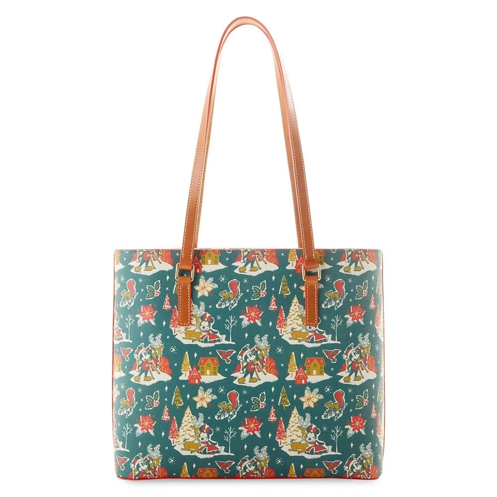 Get in the Christmas spirit with this tote bag by Dooney & Bourke. Mickey and Minnie are featured in the allover holiday-inspired print on this festive carryall, finished with goldtone hardware and leather straps.