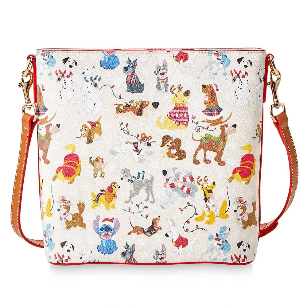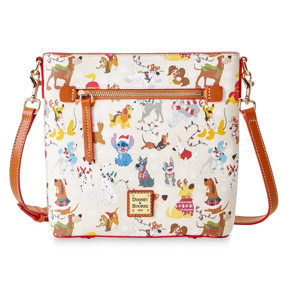Bark the herald angels sing! Celebrate the holiday season in the company of some of your favorite Disney dogs featured on this pawsome crossbody bag by Dooney & Bourke. Stella, Max, Lady, Stitch, and Pluto are just of some of the furry four-legged friends who are wrapped up for winter in their festive finest.