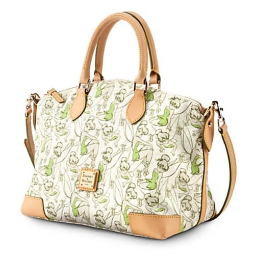 Tinker Bell flies all over this leather satchel by Dooney & Bourke. Pictured in a variety of poses, Peter Pan’s spirited fairy makes this magical bag one you’ll want to take to Never Land, or wherever you go.