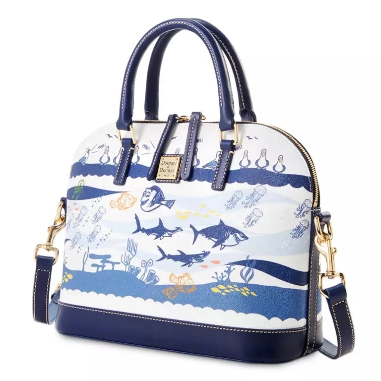 You won’t have trouble finding Nemo on this satchel from Dooney & Bourke. The wandering little clownfish is included in the allover aquatic scene on this coated cotton bag that features all the beloved characters from the Disney and Pixar film that is celebrating its 20th anniversary. With its bold design, spacious capacity and detachable shoulder strap, you’ll be lost without it.