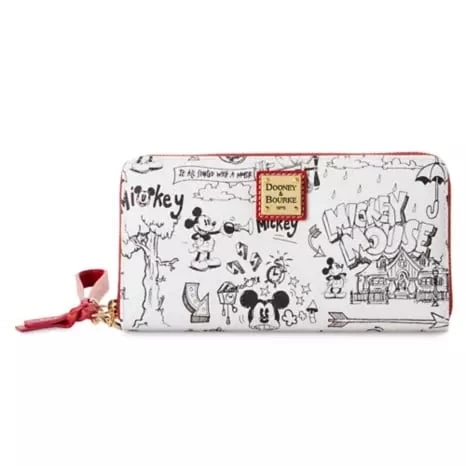 From one original to another, this Mickey Mouse wallet from Dooney & Bourke is designed to hold all your essentials. Featuring vintage-style black and white sketch art and Walt Disney’s immortal words, ”It all started with a mouse,” this coated cotton wallet has a main zippered compartment with 12 credit card slots and four pockets including a zippered one for coins. A detachable wrist band makes it so versatile, you can go anywhere in style.