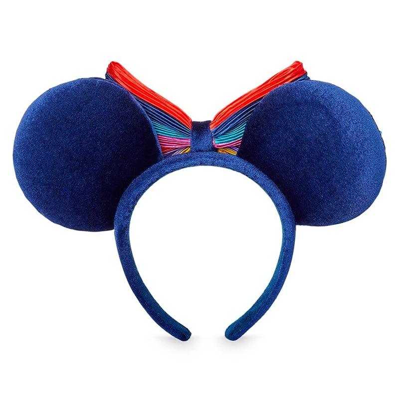 Minnie will add color and sparkle to your day with this chic ear headband. Her signature bow features a pleated spectrum of vibrant colors while the soft padded ears are covered in dazzling rhinestones.