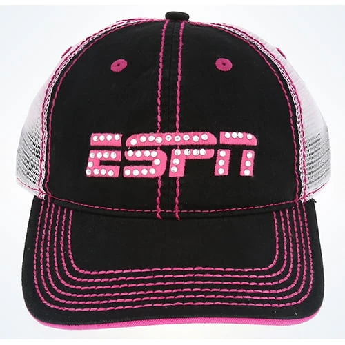 This baseball cap features a design from Walt Disney World’s ESPN Wide World of Sports. A black, pink and mesh hat with adjustable back strap and embroidery, this hat is sure to please.