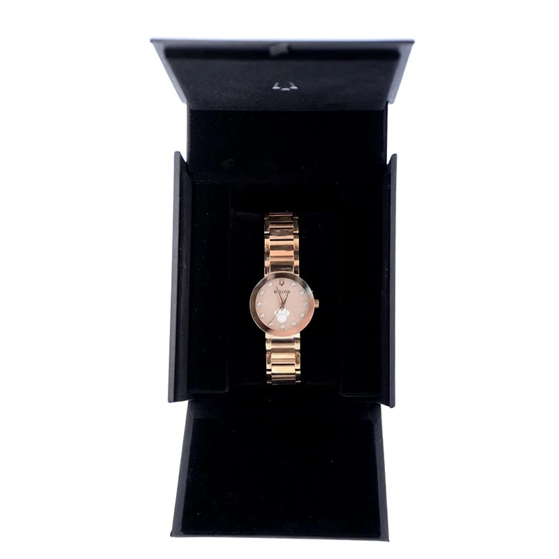 It’s time to shine with this Minnie Mouse Icon watch. Crafted in rose gold design by renowned watchmakers Bulova, this timepiece is as decorative as it is functional, with Minnie Mouse remining you that there’s magic at all times.