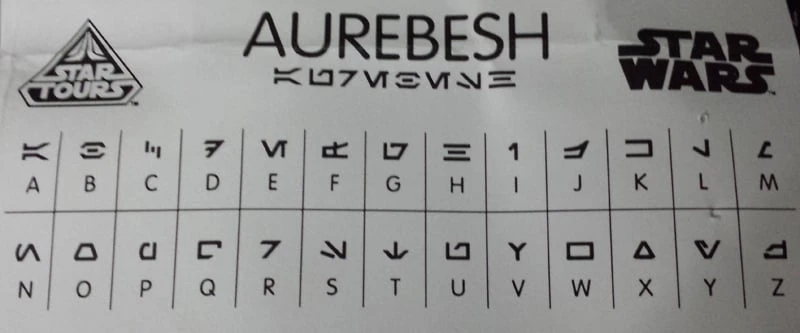 Aurebesh Script: LUKE, Underneath that, in english; JEDI.