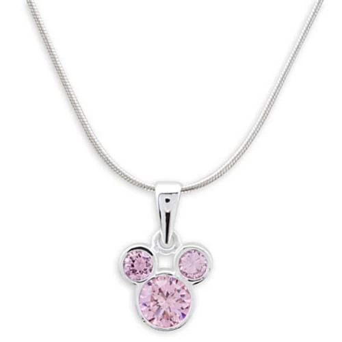 Mickey gives sterling support to your fashion statement with this fine silver chain necklace and mouse icon pendant showcasing three shimmering faceted crystals.