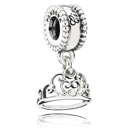 Bask in the beauty of dreams come true with Cinderella’s tiara dangle charm in regal sterling silver. Part of the PANDORA Jewelry Collection, an engraved ”Cinderella” resides on the ball.
