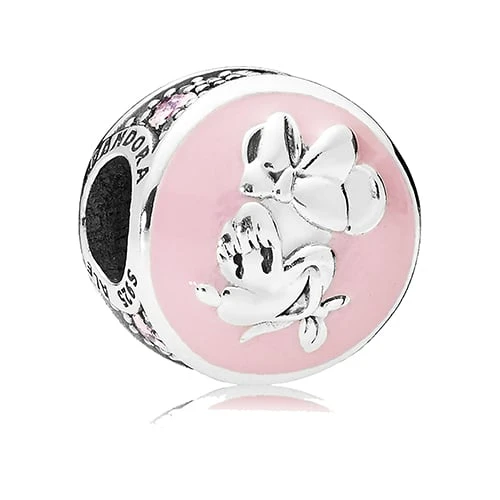 Minnie Mouse strikes a gorgeous pose on this vintage-inspired sterling silver charm by PANDORA. The retro baby pink enamel adds a sweet look to your PANDORA bracelet.