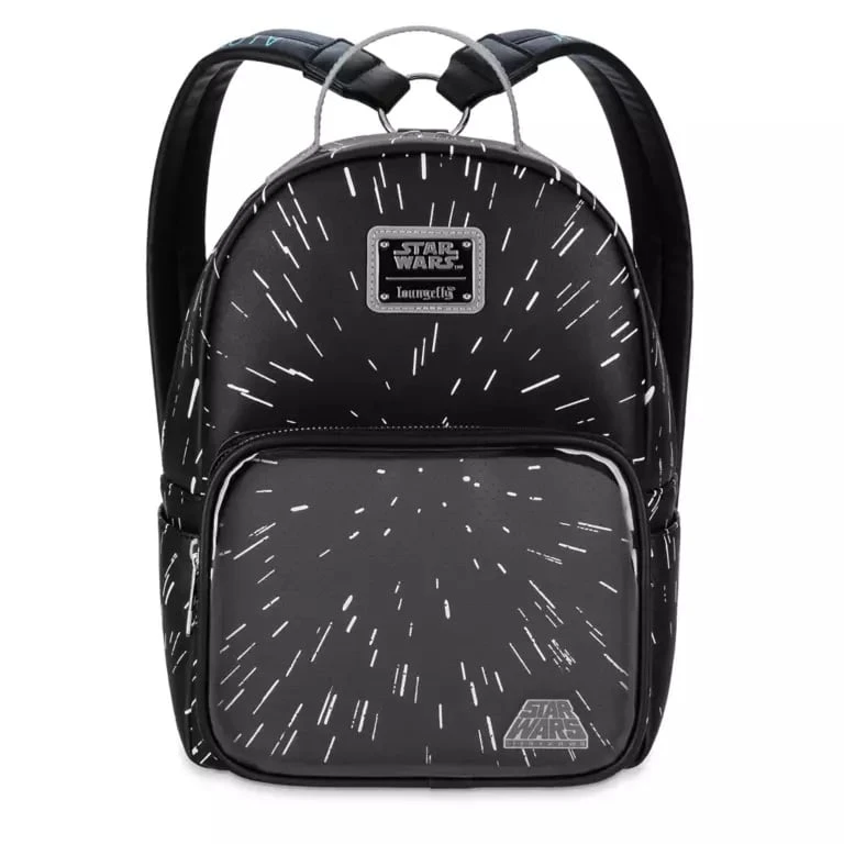 The whole design of this simulated leather backpack from Loungefly takes its inspiration from the iconic opening title sequence of the very first Star Wars movie. The interior features the introductory scroll for Episode IV: A New Hope while the exterior has an allover hyperdrive design and the straps have the saga’s classic line, ”A long time ago in a galaxy far, far away . . . ”