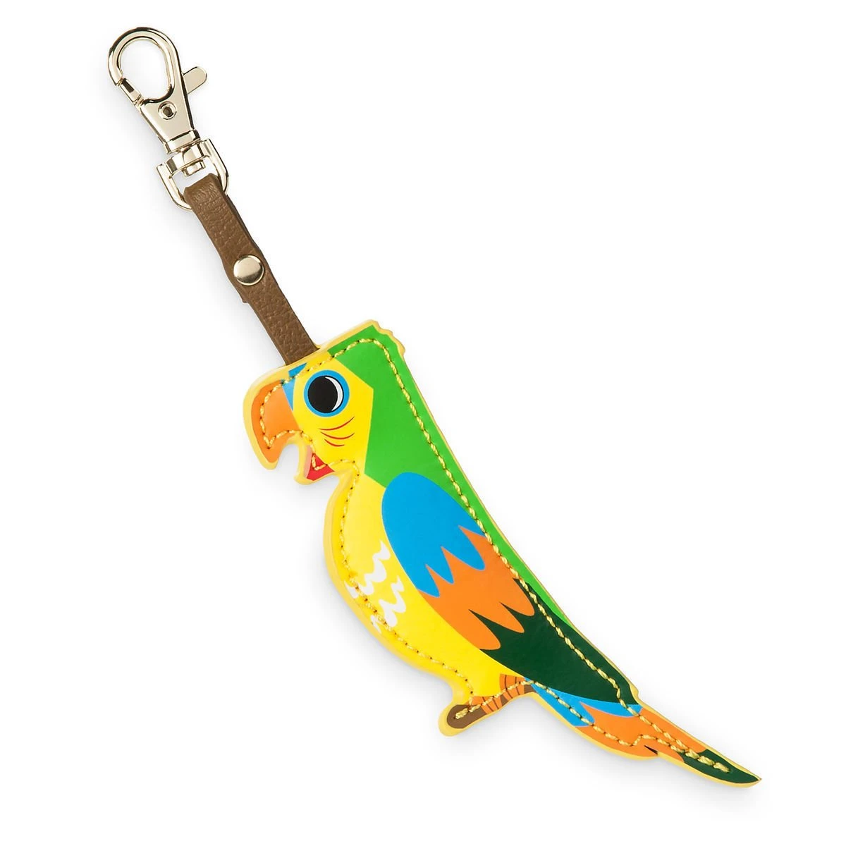 Most little birdies would fly away, but you can carry this Tiki Room bird every day! This cage-shaped crossbody bag with chunky link chain features a simulated leather Jose key fob to be dangled inside or removed for use.