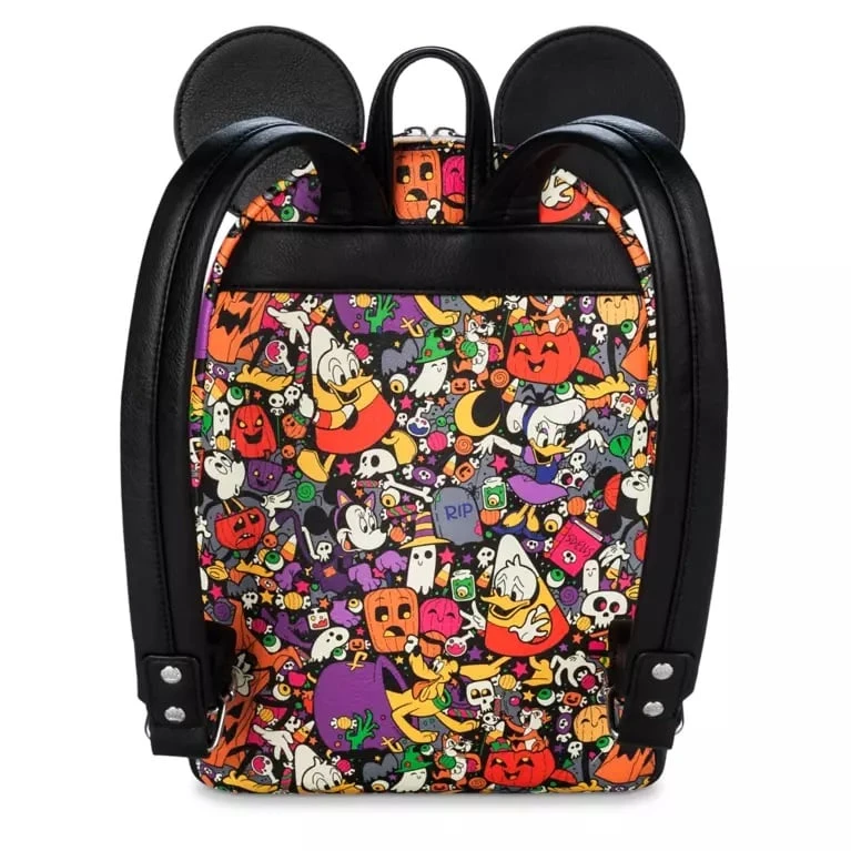 You’ll be treated to scarily admirable looks left and right when wearing this Halloween backpack by Loungefly. This faux leather carry all features some favorite classic Disney characters and is tricked out in an allover Halloween print with ghosts, pumpkins, candy, gravestones and more.