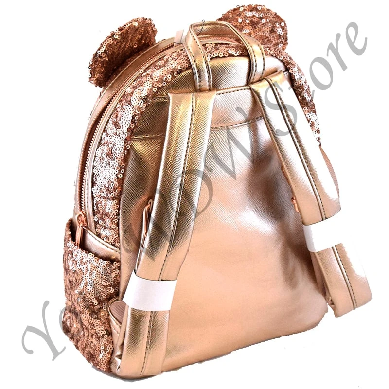 - Rose gold sequined design. Sequins are no longer on the back of the bag, or the bottom.