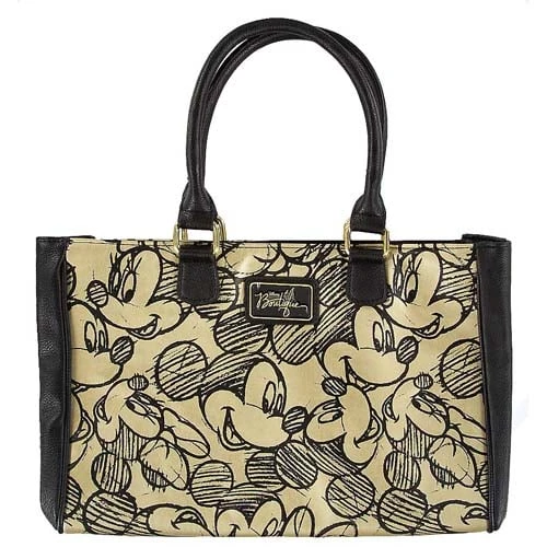 Minnie’s soft and stylish imitation leather tote by Disney Boutique is accented by a gold with black sketches of Mickey and Minnie scattered on the front and back! Carry all your leisure-time essentials with star quality!