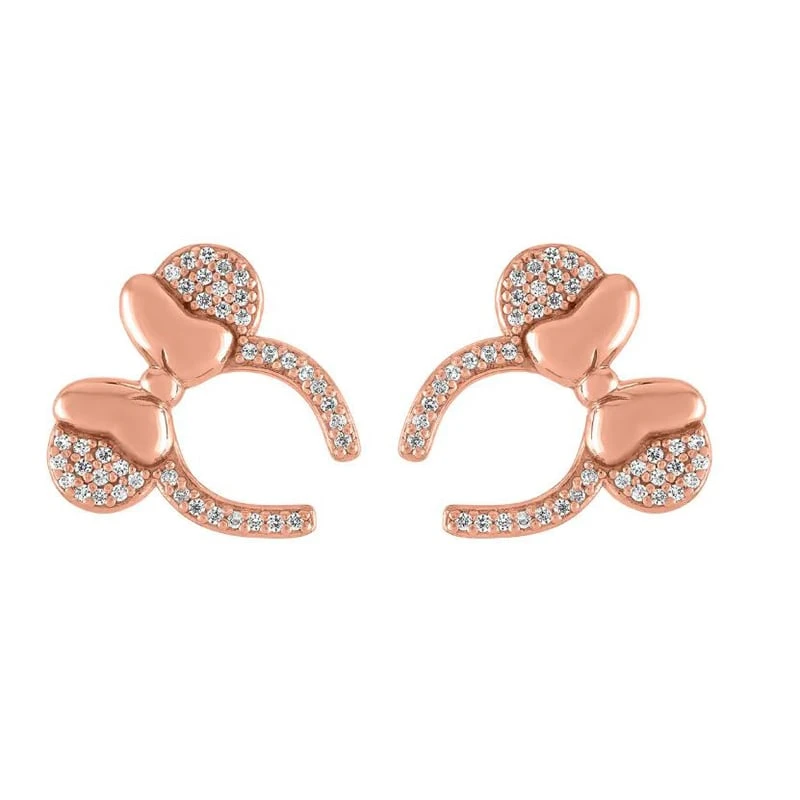 These post earrings, inspired by Minnie’s familiar ear headband, have been fashioned in a dazzling combination of sterling silver with rose gold plating, and encrusted with cubic zirconia, by designer Rebecca Hook.