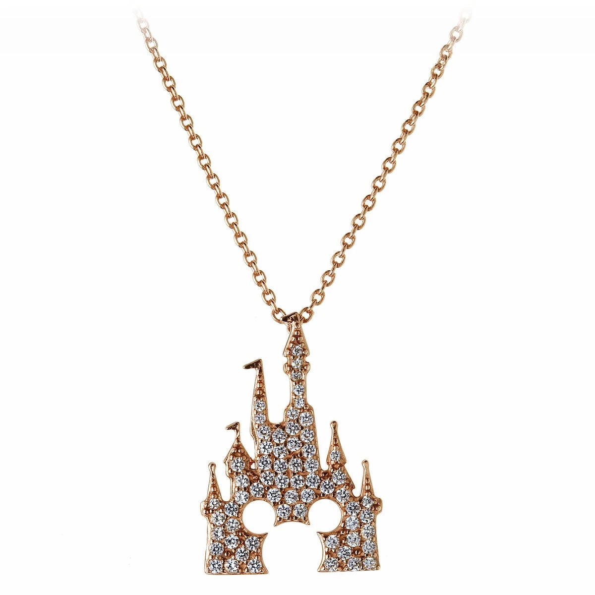 Disney magic will always be close to your heart with this dazzling rose gold-plated necklace featuring a Mickey icon inside a Disney castle. Crafted in sterling silver by Rebecca Hook, the iconic design is sure to add sparkle and smiles to your day.