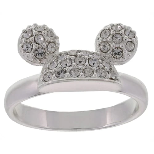She’ll swoon over this glamorous silver tone ring featuring Mickey’s iconic ear hat with sparkling pavé-set clear gems.
