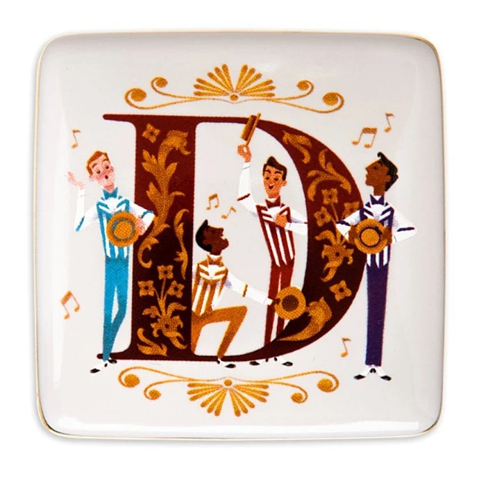 D is for Dapper Dans on this darling trinket dish. The gold edged ceramic decor item features exterior and interior designs inspired by the wonder of the Disney Parks barbershop quartet who are Main Street, U.S.A. mainstays.