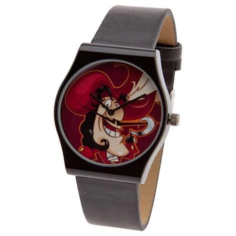Just the sound of Tick Tock makes Captain Hook nervous, but thankfully this watch is nice and quiet. Peter Pan’s villainous buccaneer is pictured with a wicked smirk on this treasured pirate watch.